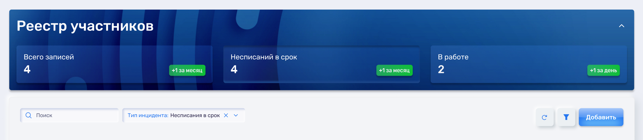 default, фильтр в таблице также сбрасывается. При этом статистика в других плашках пересчитывается в соответствии с данными в таблице.