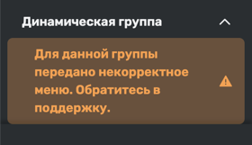 В случае ошибках запроса или валидации меню, в консоли будут выведены сообщения о конкретных проблемах, а в самой группе – лишь краткое пояснение (для пользователя). Например: